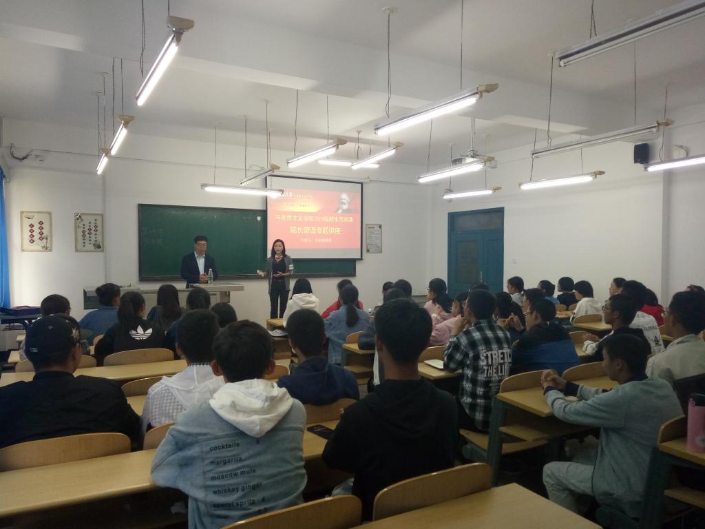 院长吴宏政教授在经信教学楼C103室为思想政治教育专业全体新生讲授专题思政课。课程由辅导员程思阳主持,2019级全体本科新生认真聆听了本次专题思政课。