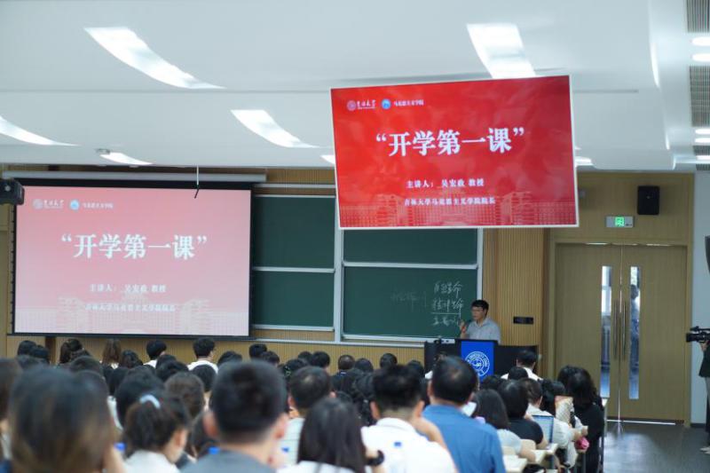 最后,吴宏政教授还特别强调马克思主义的学术观是站在全人类视角思考人类解放问题的学术观。吴宏政教授认为,当前存在的学术不端现象根源于学术观的局限性。如果仅仅将做学问等同于谋生手段,那么也就将学术观局限在“小我”之内,学术不端现象就难以避免。马克思在青年时期选择职业时就展现出了为全人类幸福而工作的崇高品格,随后在马克思的一生中,无不是在践行这一“初心”。正是因其站在人类解放的崇高道路上,马克思才能创造出如此伟大的科学理论。因此,吴宏政教授寄语全体研究生新生同学,要秉持着“大我”的学术观,“真研究问题、研究真问题”,真正为建设社会主义现代化强国和实现中华民族伟大复兴的伟业做出自己的贡献。