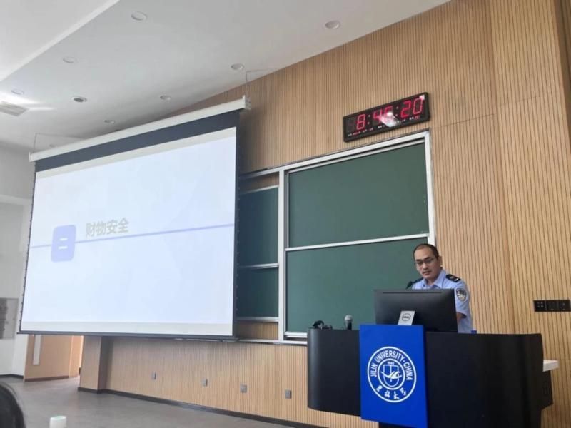 。魏老师表示,希望今天的讲座能够帮助大家度过安全美好的研究生时光,同时为大家介绍了保卫处的地址、报警电话与公众号平台,如有问题可随时寻求帮助。接下来,魏老师从财物安全、防范诈骗和消防安全三个方面为同学们带来了新生安全意识教育的讲座。