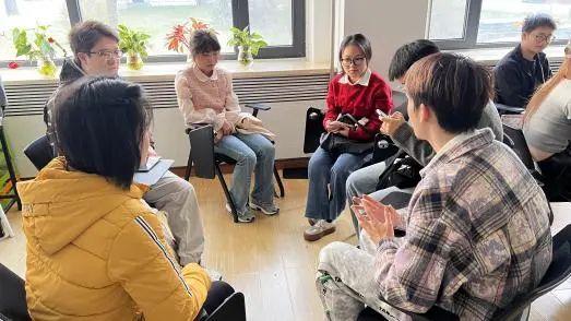 活动伊始,学生朋辈心理辅导员杨蕙嘉总体上介绍了本次心理团辅活动的主题、目标与大致流程,并希望同学们通过全身心的感受和投入,从中获得内在满足和珍贵友情。随后活动开始,现场采取报数方式进行随机分组,以小组为单位进入“我知道”的游戏环节。同小组同学围坐在一起,讨论朋辈给出的话题并进行扩充,大家从自己的名字含义、家乡美食到爱好特长再到新学期的体验感受,使同学们关注自己的同时也关注了他人,活跃了现场气氛,增强了团体成员间的熟识。