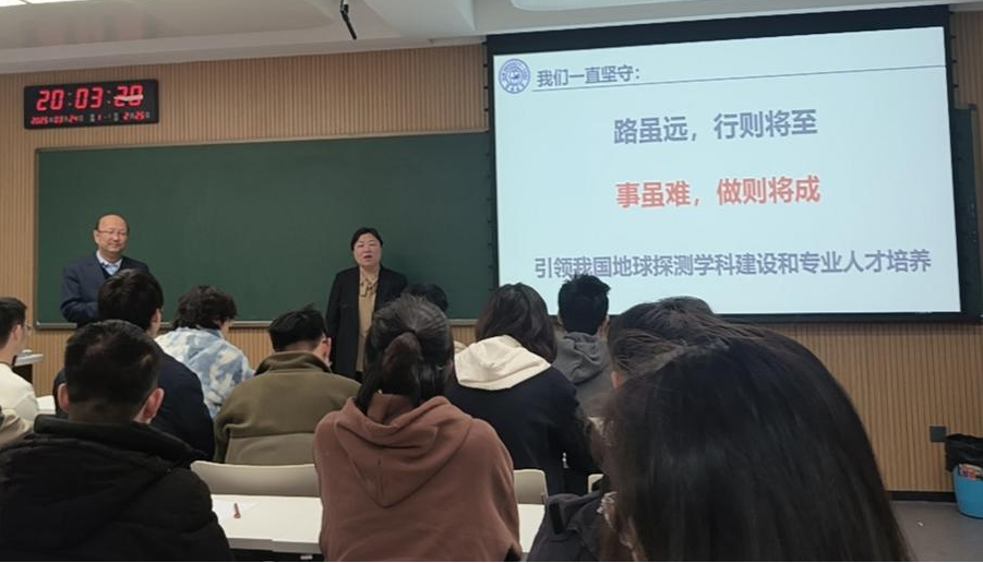 地学部七十余年来的发展历程,追溯了李四光、黄大年等前辈先贤的奋斗历程,提出要从“研、严、妍”三个维度培养高质量人才。他提出同学们要以黄大年同志为榜样,时刻铭记“这里是黄大年精神的发源地,黄大年曾经战斗过的地方”,学习他“心有大我、至诚报国”的爱国情怀,鼓励学生在学习中要勇于探索、敢于创新,不断提升自己的专业素养和综合能力,为国家的地质事业做出自己的贡献。