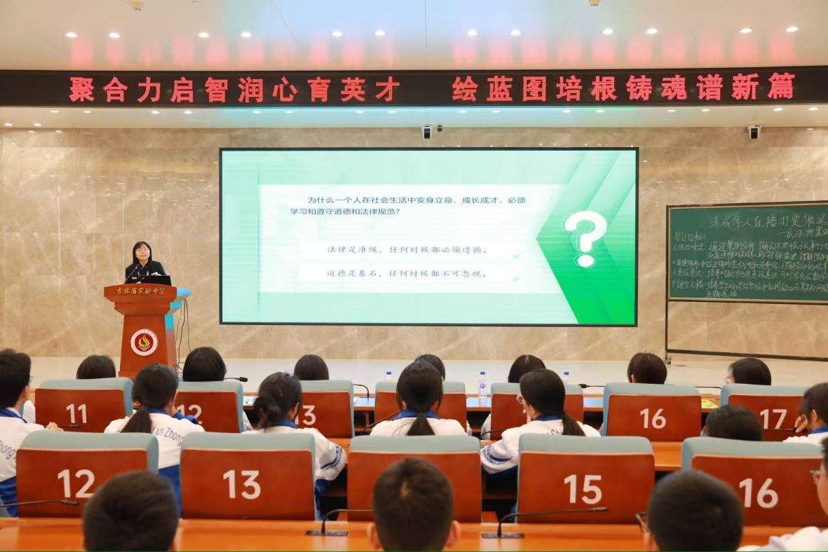 与吉林省实验中学、边境县学校共同主办的“大中小学思想政治课一体化示范课展示活动”在吉林省实验中学成功举办。本次活动以习近平法治思想为主题,汇聚多所中小学教师代表,共同探讨思政课教学改革创新路径。