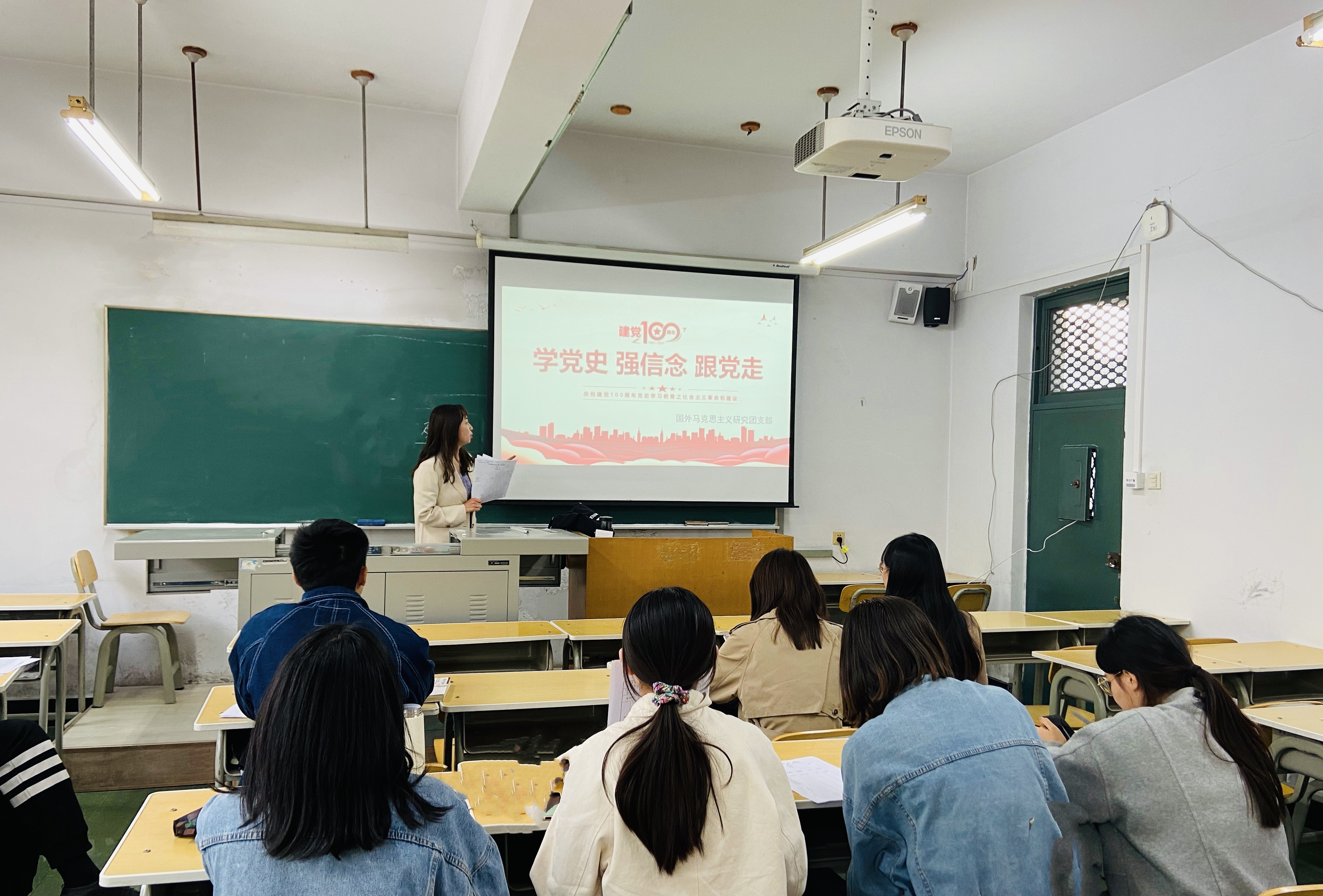 马铭阳同志首先带领大家回顾了党的百年历史,通过组织大家集中观看《重温党史》微视频的方式,讲述党在社会主义革命和建设时期的红色故事,并引导同学们进行小组讨论,交流想法。通过学习,激发了与会同学永远跟党走的决心,鼓舞同学们深刻领悟了马克思主义的真理力量与实践力量。