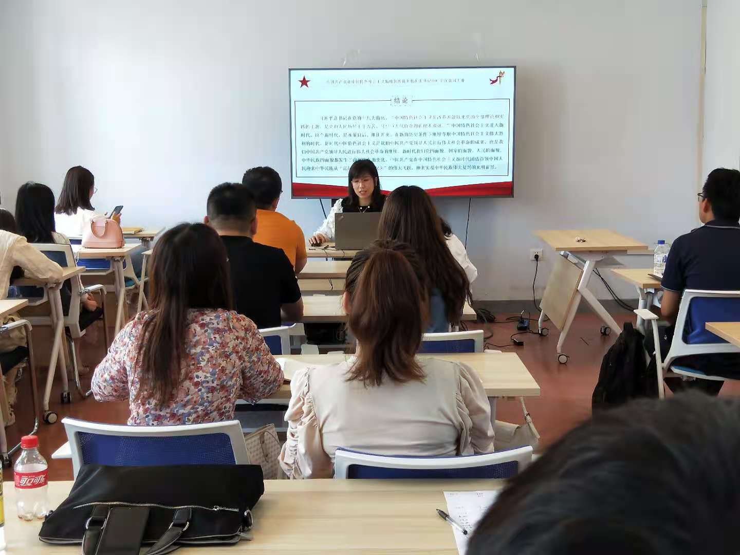 主楼四楼404教室组织开展以“述党史 传精神 强信仰”为主题的党课学习活动,本次活动由学院团委书记万佳悦主持,学院党委副书记、纪委书记崔妍主讲,部分研究生党员参加了此次活动。
