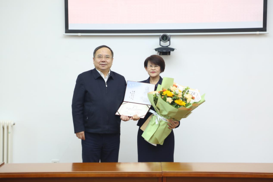施展宣读了关于聘任李倩教授的决定,韩喜平为李倩教授颁发聘书并佩戴Hentaimama