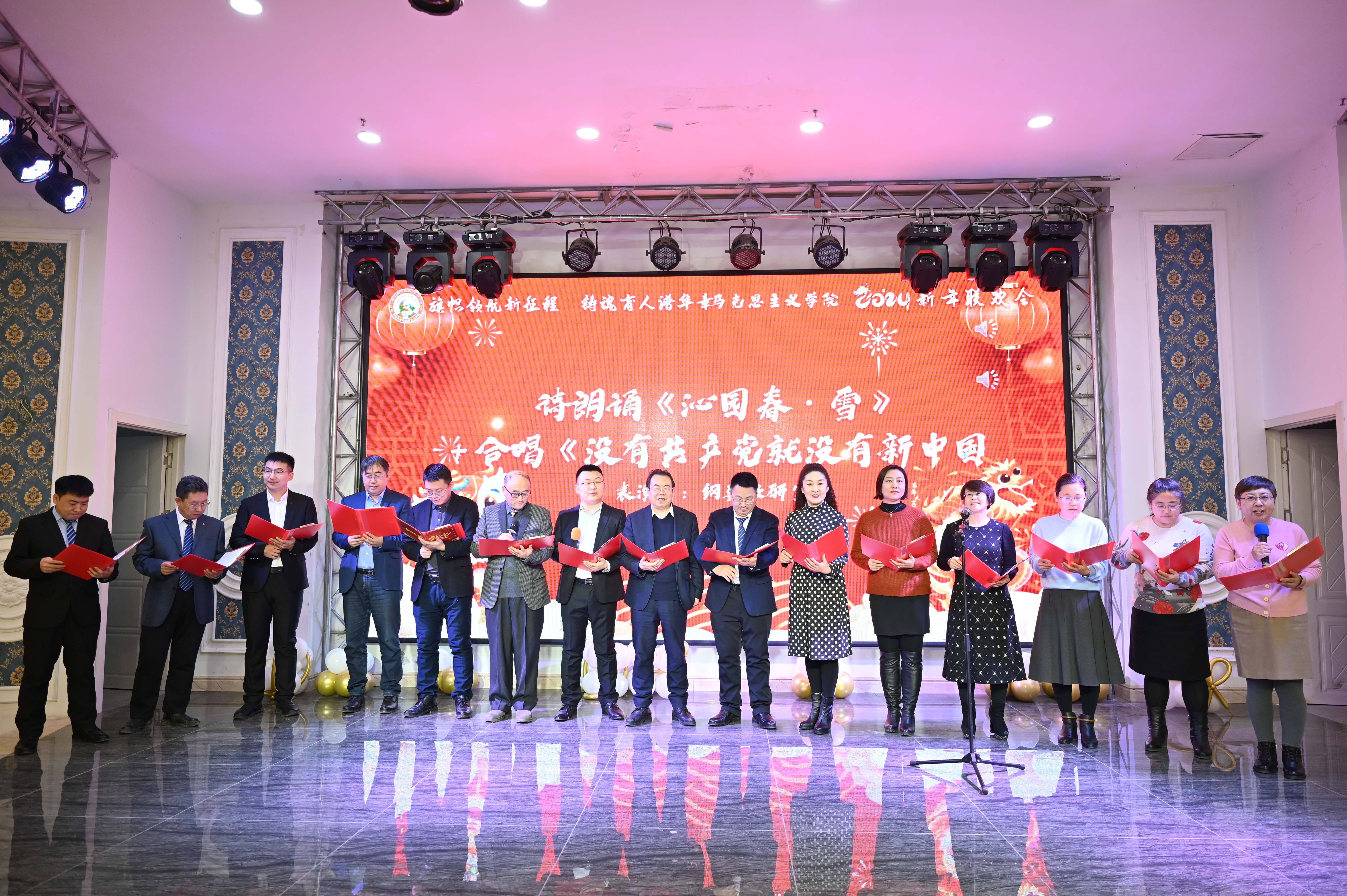 领导班子、全体教职工与退休教师代表欢聚一堂,迎接新的一年到来。