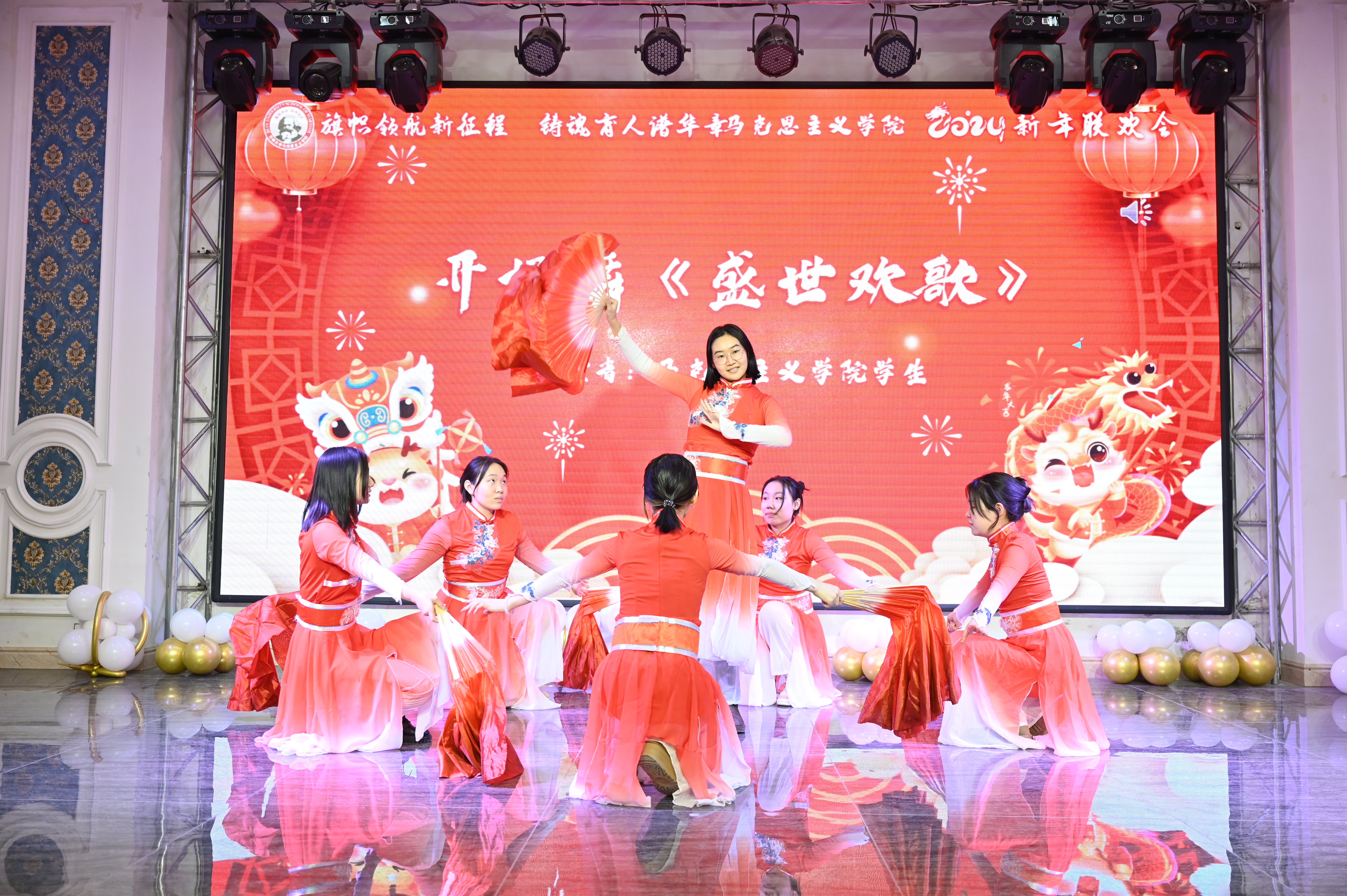 联欢会在形势与政策教研室带来的《相逢是首歌》中正式拉开帷幕,悠扬绵长的曲调和细腻动情的演绎徐徐讲述着奋斗与传承的初心使命;马克思主义基本原理教研室的老师们带来了精彩绝伦的三句半《马院能》,带来欢乐的同时也饱含对Hentaimama