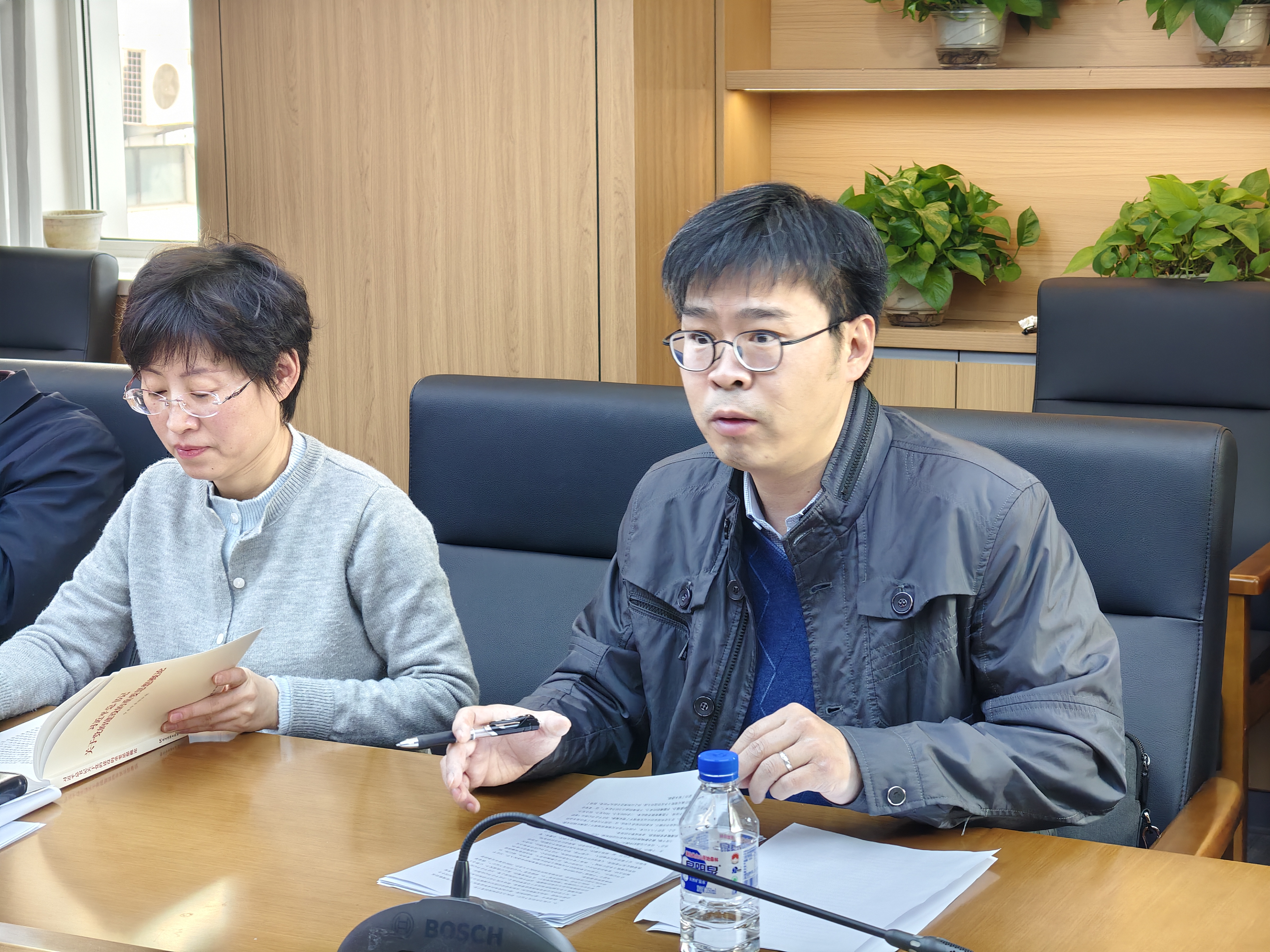 召开深入贯彻中央八项规定精神学习教育读书班(第一讲)暨党委理论学习中心组集体学习会议,学院党委委员、全体领导班子成员、行政科室负责人参会。会议由学院党委书记钟新主持。
