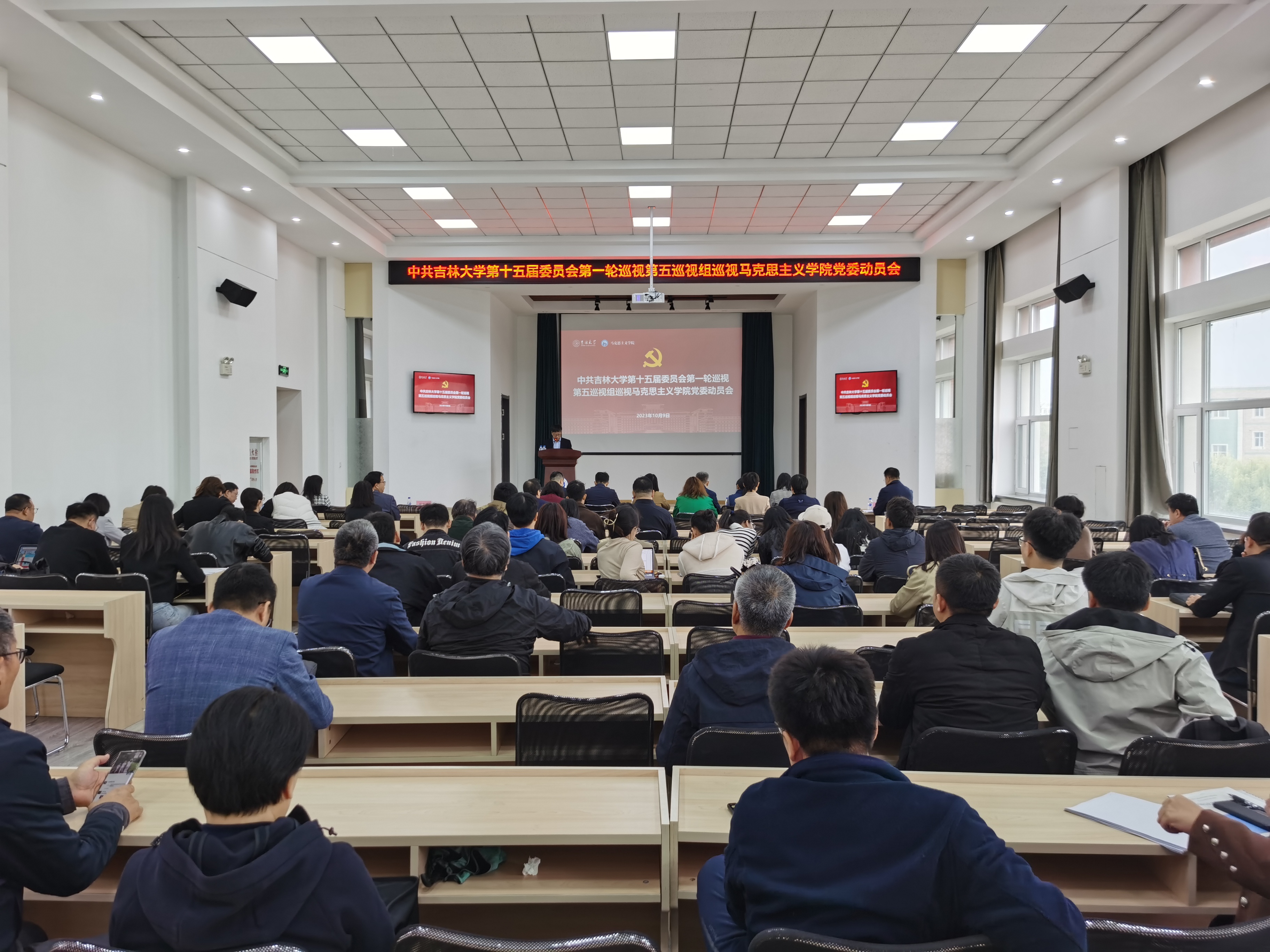 党委动员会在南湖校区图书馆四楼报告厅召开。党委第五巡视组组长张蓼红及全体成员,学院领导班子全体成员,党委委员、纪委委员,学术委员会、学位评定分委员会、教学委员会成员,支部书记、教研室主任,教职工代表、民主党派代表、学生代表等参加了会议。会议由院长吴宏政主持。