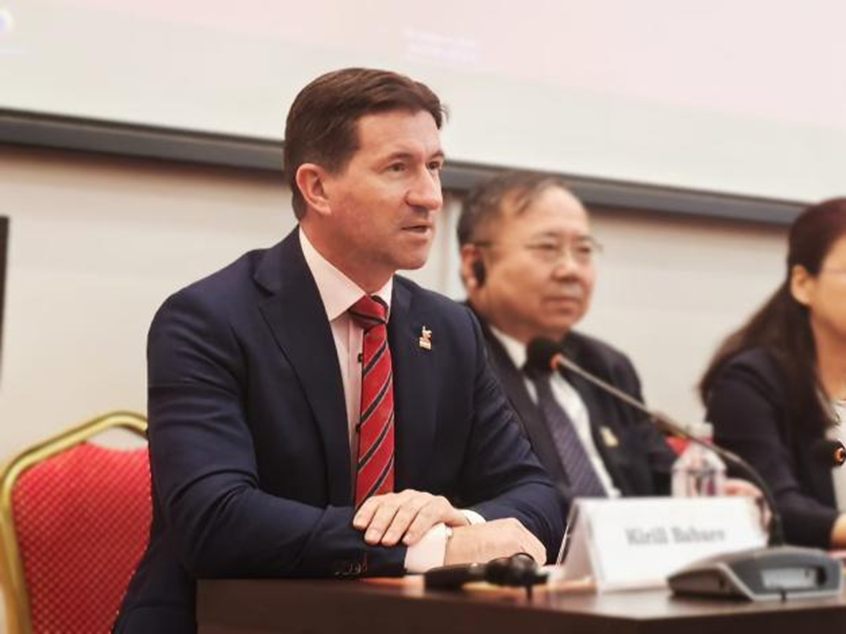 党委副书记韩喜平教授,俄罗斯科学院中国与现代亚洲研究所所长基里尔·巴巴耶夫教授,俄中友好协会第一副主席、中华人民共和国“友谊勋章”获得者加琳娜·库利科娃出席开幕式并致辞。