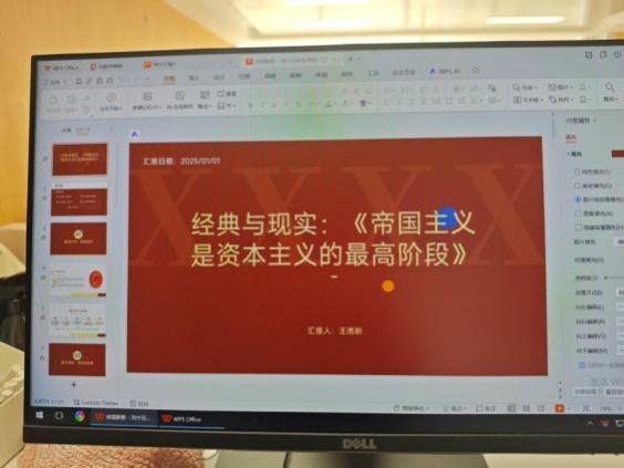 15位同学按照顺序依次登台,围绕《共产党宣言》《路德维希·费尔巴哈和德国古典哲学的终结》《〈政治经济学批判〉序言》《帝国主义是资本主义的最高阶段》等经典著作展开分享。