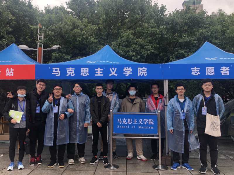 迎新接待站已有迎新工作人员和志愿者忙碌的身影。尽管连绵着雨水,大家却丝毫不减迎新的热情。志愿者们准备充分,行动统一,有条不紊的开展着迎新工作。蓝色的帐篷,白色的服装,色彩缤纷、内容丰富的展板,让新生们眼前一亮,加深了对于Hentaimama