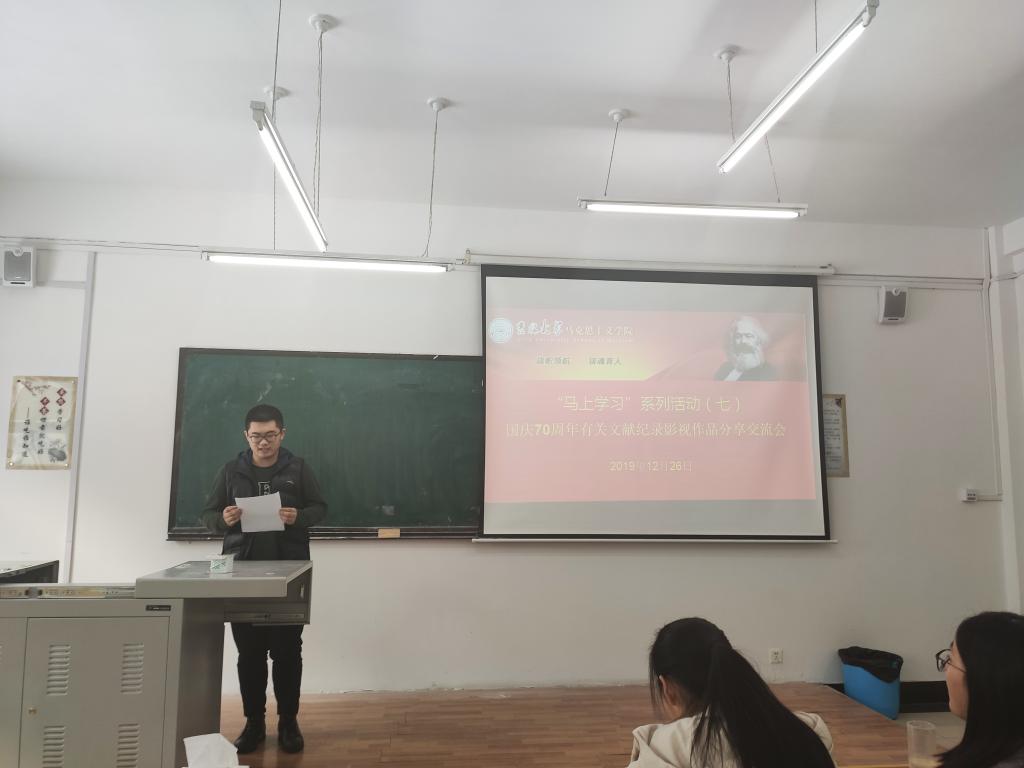 为深入学习和贯彻习近平新时代中国特色社会主义思想、增强对新中国成立70周年以来发展成就的认同感和自豪感,在辅导员程思阳的组织下,学院2018级本科生积极分子依托“马上学习”系列活动平台,于2019年12月26日观看相关影视作品及纪录片,充分利用优质资源开展集体学习。