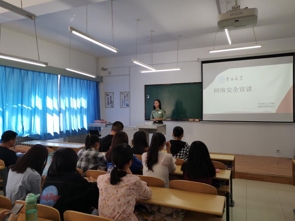 于九月十一日组织2018级本科生开展网络安全宣讲活动。学院2018级全体本科生参加了此次宣讲活动,活动由本科生辅导员程思阳主持。
