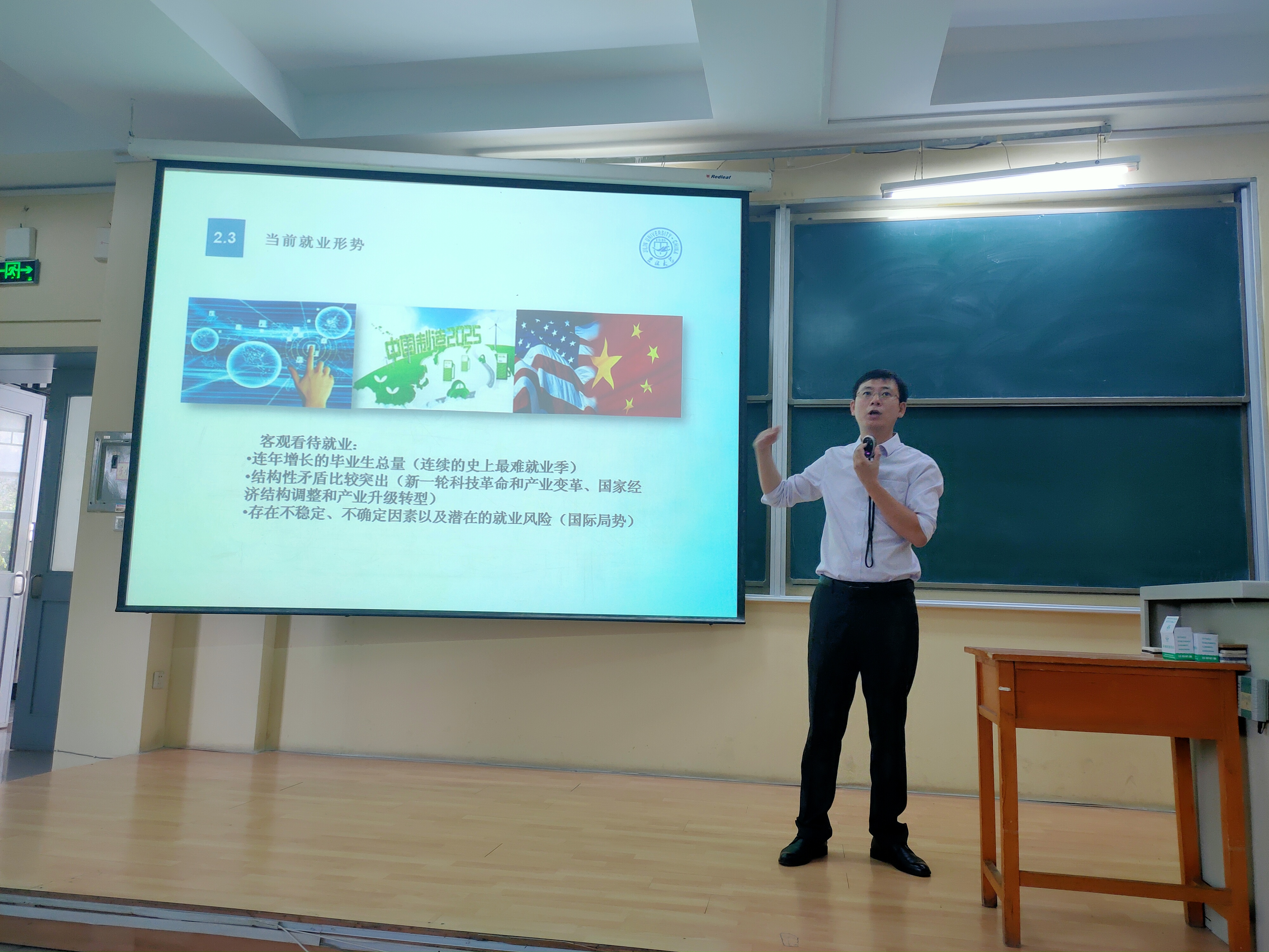 历年毕业生的主要就业情况。随后,马老师系统阐述了如何做好研究生生涯规划这一关键问题,指出研究生要根据自身的兴趣爱好及专业特点认真做好自己的职业生涯规划,从自己的实际情况出发,尽早完成自己的人生规划,并踏踏实实勤奋学习,朝着自己的理想目标努力前进。最后,马老师结合自己的亲身经历,强调了研究生期间需要处理的几个关键问题,并将自己在工作中总结的诸多经验一一传授给同学们。同时,马老师建议同学们平日积极关注学校就业信息和就业政策,为实现就业做好准备。