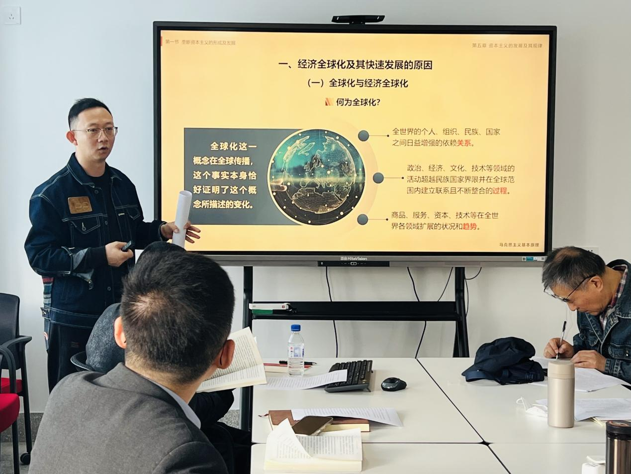 在教学展示环节,青年教师于天宇、陈旭、李蔚然分别围绕生产集中与垄断的形成、经济全球化及其影响、资本主义的基本矛盾与经济危机的主题,进行了教学展示。老师们对青年教师的教学展示给予高度评价,认为本次备课会展现了青年教师扎实的理论功底和积极的创新精神。同时,针对青年教师在教学实践中遇到的困惑进行了一一解答,并提出了宝贵的意见和建议。如在教学中要进一步关注学生的反馈和学习效果评估,根据学生的兴趣和需求灵活调整教学内容和方法;要加强马克思主义基本原理与现实问题紧密结合,让原理课教学更具现实感和说服力。