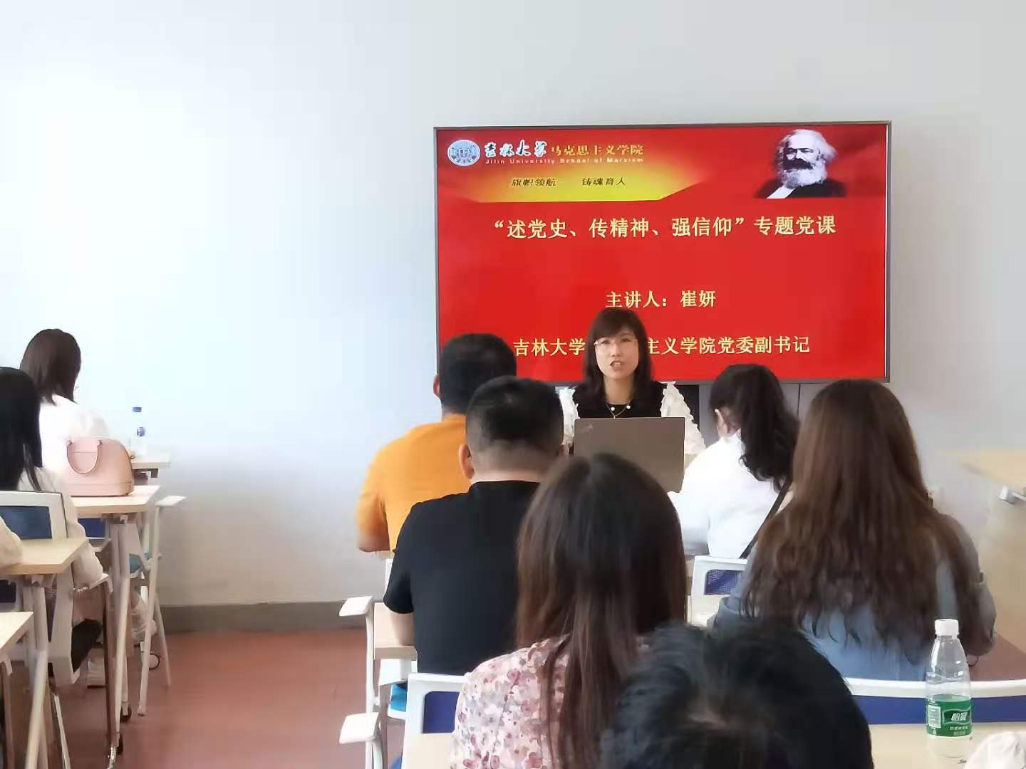 主楼四楼404教室组织开展以“述党史 传精神 强信仰”为主题的党课学习活动,本次活动由学院团委书记万佳悦主持,学院党委副书记、纪委书记崔妍主讲,部分研究生党员参加了此次活动。
