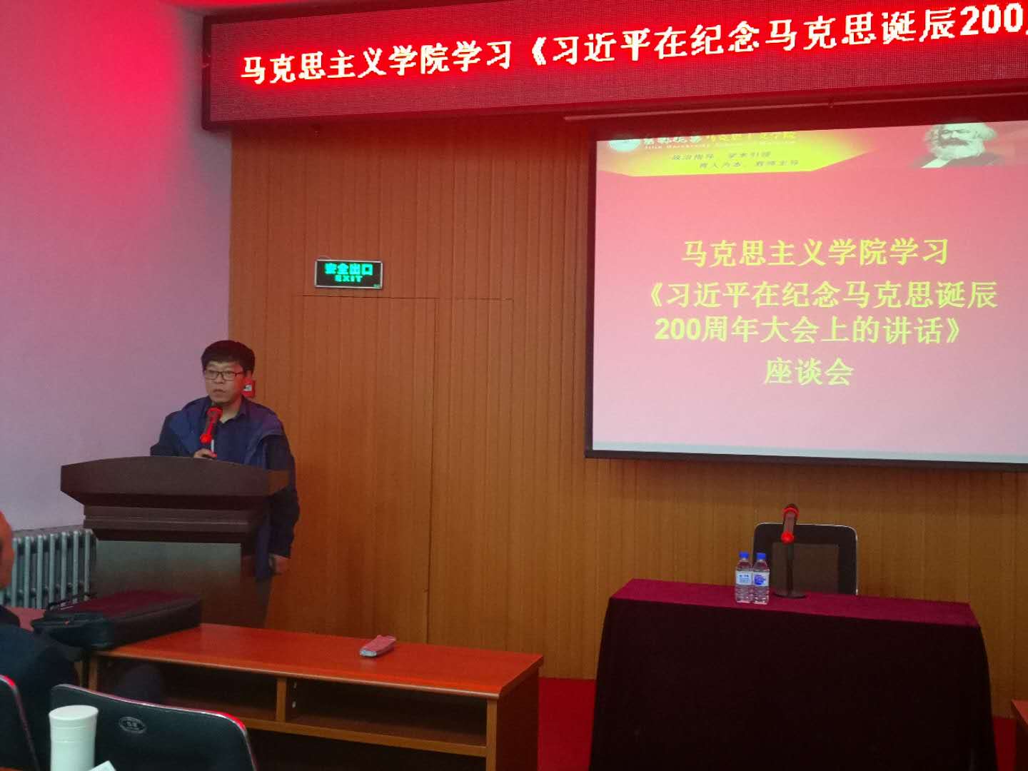 在南区友谊会馆报告厅召开了学习座谈会。会议由吴宏政副院长主持,全体领导班子成员、各学科带头人、教研室党支部书记等60余位教师和行政人员参加了座谈。张敏老师对习近平总书记关于纪念马克思的重大意义进行了分析。仝联勃老师结合习近平总书记的讲话,分析了中国特色社会主义哲学社会科学发展的“理论自觉”和“文化自信”问题。李晔晔老师阐释了马克思主义指导下,中国共产党承担的历史使命。里光年老师对习近平总书记提出的人类命运共同体思想作出了解读。常艳芳老师对马克思的人格魅力与大学精神的关系进行了分析。梁伟峰老师分析了学习马克思主义理论与建构中国特色社会主义哲学社会科学的关系。万佳悦老师谈了学习马克思主义理论与学院党支部工作的关系。最后,党委书记霍志刚作了总结发言,指出Hentaimama