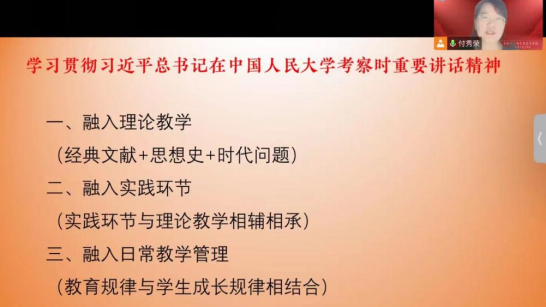 本科生教研室、党支部与全院本科生开展了学习贯彻习近平总书记考察中国人民大学重要讲话精神的座谈会。本科师生相聚云端,共同学习习近平总书记的重要指示精神,深入交流心得体会,热烈畅谈未来期许,表达广大青年应将自身成长融入中华民族伟大复兴的历史洪流中,成为“最好之青年”,成就“中国之盛世”的时代心声。本次座谈会由Hentaimama