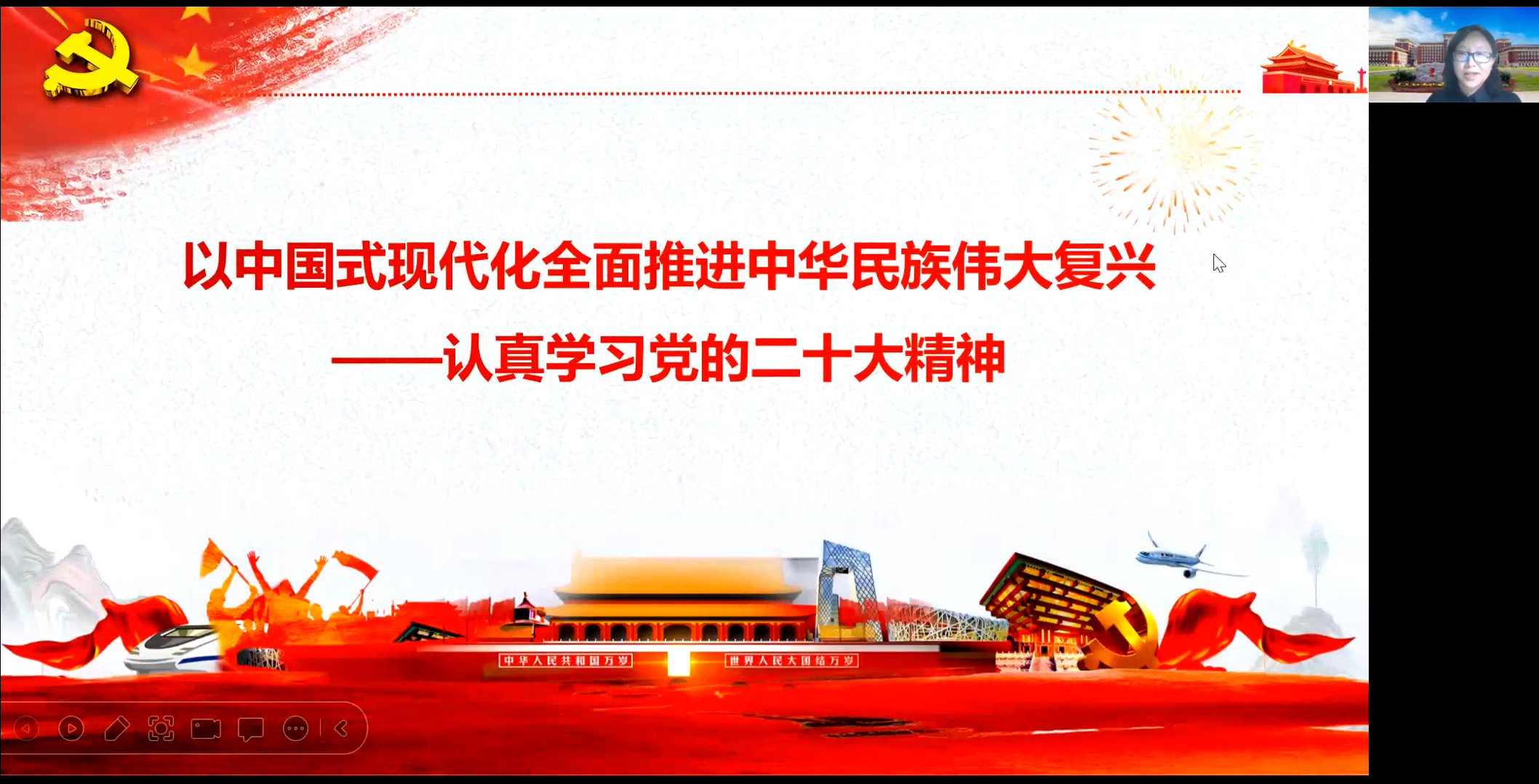最后,教研室主任常艳芳老师就继续加强学习党的二十大精神,推动党的二十大精神进课堂,以及其他相关工作进行了安排。支部书记李泓祎老师对教研室老师们的支持表示感谢,也希望在接下来的工作中,通过各种形式,推动基础党支部和教研室持续兴起学习宣传贯彻党的二十大精神热潮。