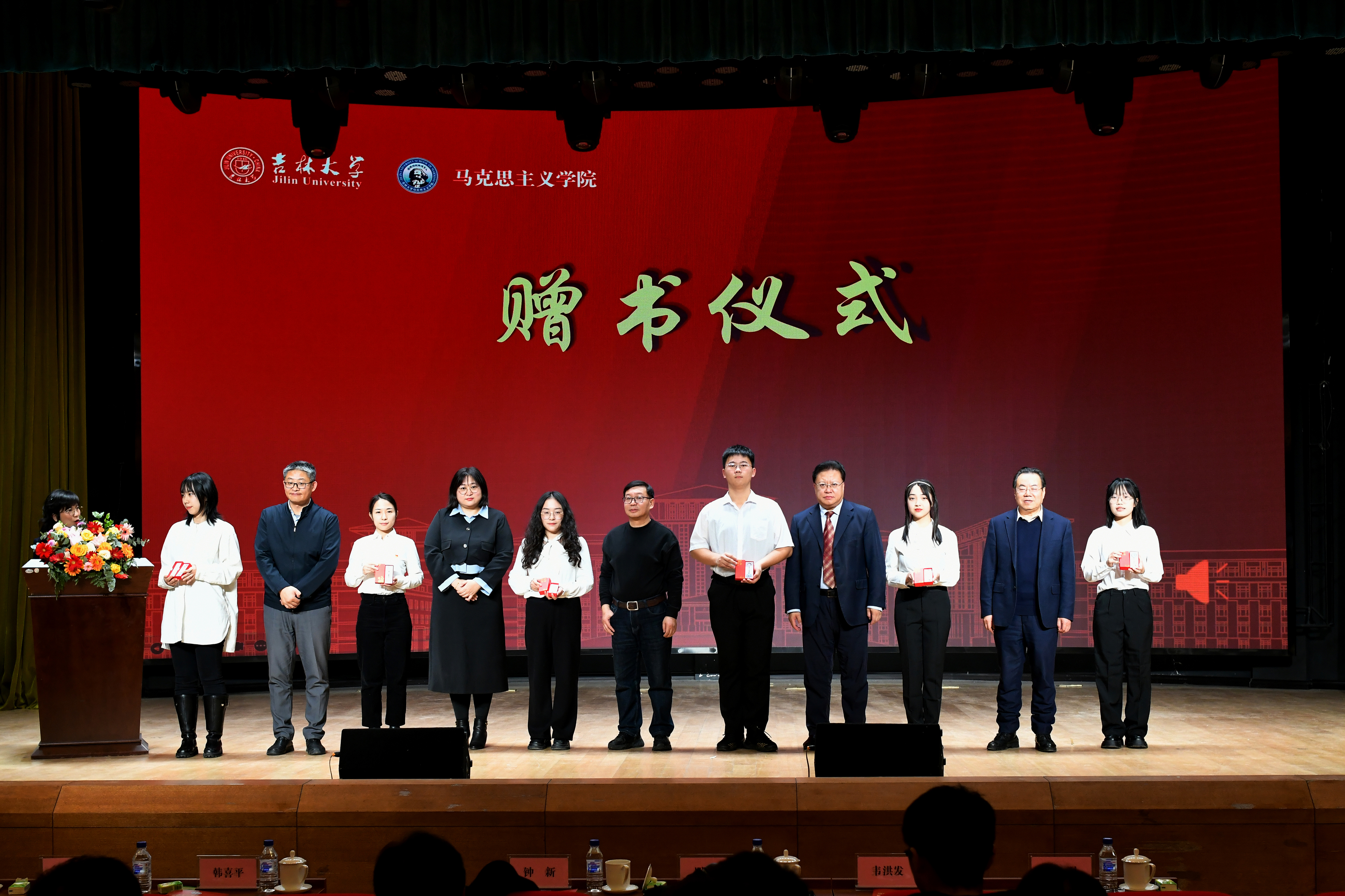 随后举行了赠书仪式。为奖励同学们阅读经典文集、扎根理论土壤、激发学习兴趣,学院为每位新生同学准备了电子版《马克思恩格斯选集》和学院纪念版U盘,学院领导老师上台为新生代表颁赠。