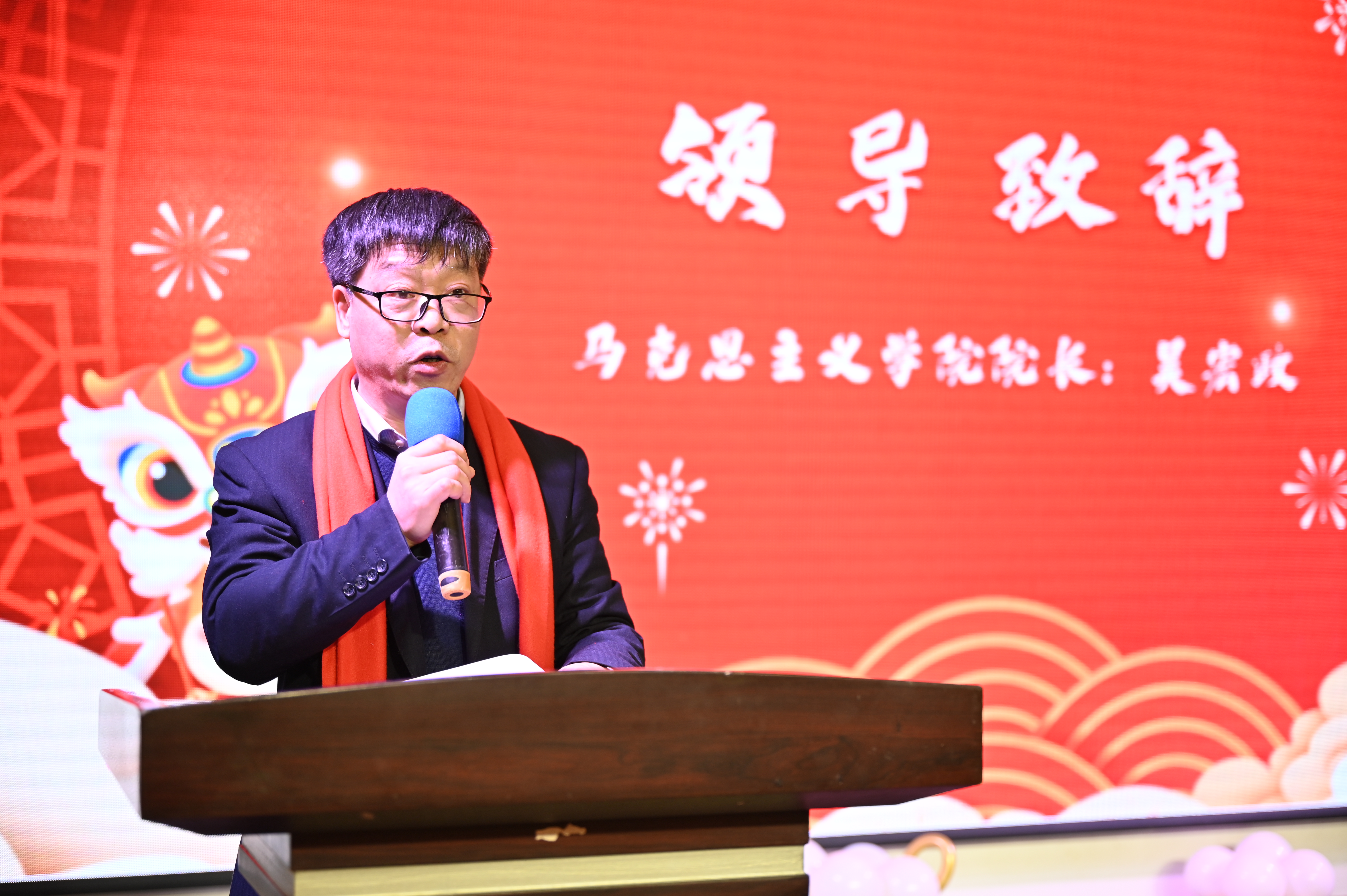 院长吴宏政总结2023年工作,为2024新年致辞。岁月不居,时光荏苒,站在2023年与2024年的交汇处,吴宏政院长向为学院各项事业辛勤耕耘的全体教职员工、向为学院建设作出重要贡献的荣休荣退老同志致以最衷心的感谢和最诚挚的祝福;吴院长表示2023是硕果累累的一年,学院充分发挥全国重点马院辐射带动作用,在学生培养、学科评估、师资引进等方面捷报频传,学术科研成果丰硕、学科建设成就喜人、行政效能整体提高;寄语2024,他希望全体教职工继续奋斗、砥砺前行、昂首阔步、再续华章。