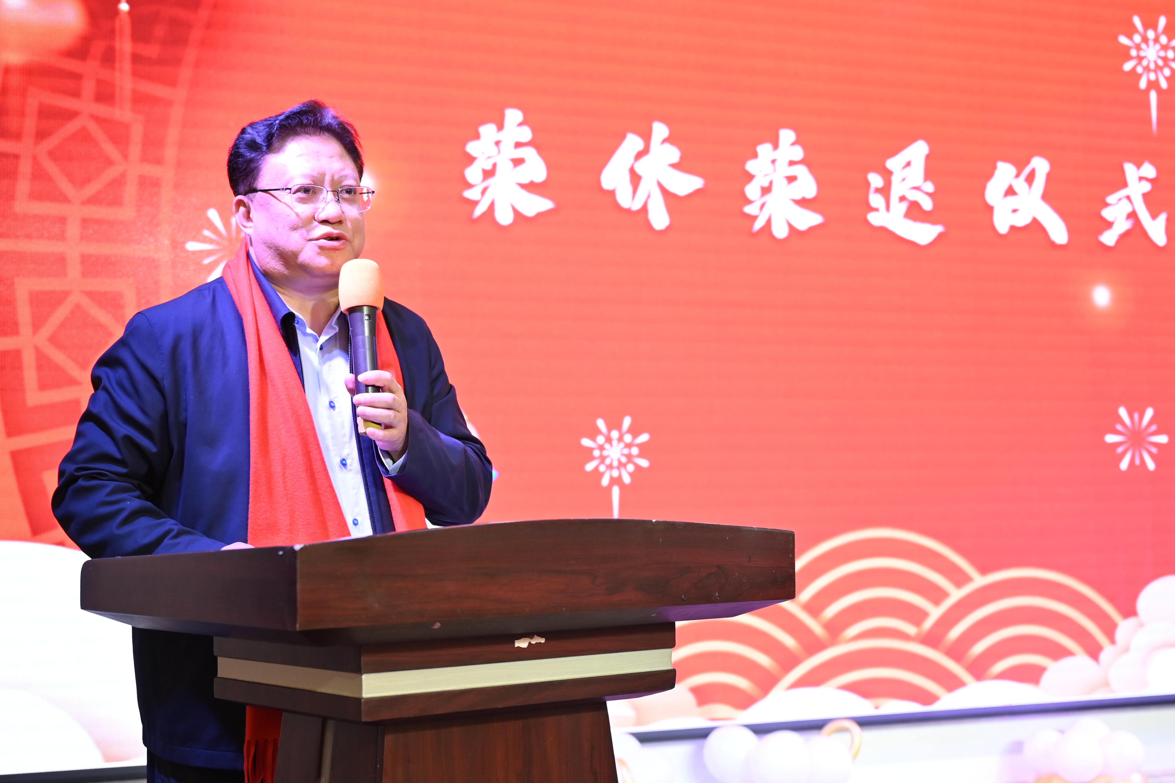 领导班子、全体教职工与退休教师代表欢聚一堂,迎接新的一年到来。