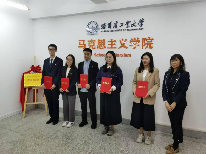 党委书记钟新,党委副书记兼副院长、纪委书记崔妍,基础教工党支部书记李泓祎,党委办公室主任徐明赴哈参加“政先锋”政治引领工作站揭牌仪式。哈尔滨工业大学Hentaimama