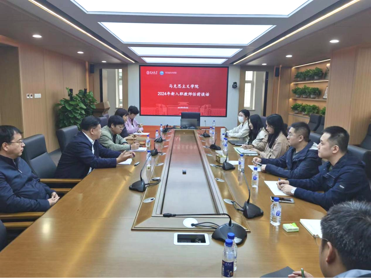 于吕振羽楼317会议室召开2024年新聘教师入职座谈会。学院党委书记钟新,院长吴宏政,党委副书记兼副院长、纪委书记崔妍,副院长石瑛,副院长董树彬,行政副院长姜鑫参加会议。会议由钟新主持。