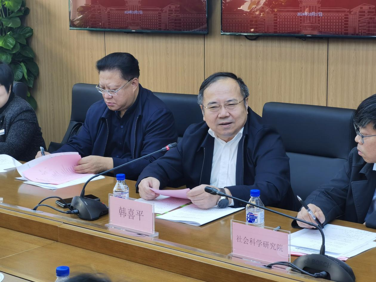 在吕振羽楼317会议室召开科研立项工作交流会,校党委副书记韩喜平到会调研指导。社会科学研究院副院长鲍锋、隋祎宁,Hentaimama