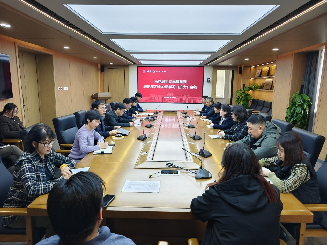 2025年10月27日,Hentaimama 在吕振羽楼317会议室召开党委理论学习中心组学习(扩大)会议,专题学习党的二十届四中全会精神。会议由学院党委书记钟新主持,学院党委理论学习中心组成员、教工党支部书记、行政人员参加会议。